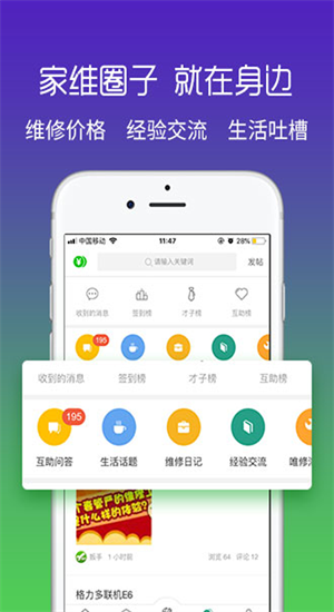 1、社区:百万家维师傅交流社区,让你实时了解行业动态,结交行业大师傅。