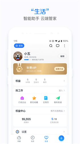 115生活破解版VIP账号是一款专为苹果用户打造的破解版云存储应用,专为需要高效数据管理与安全存储的iOS用户设计。作为解锁VIP账号特权的破解版本,它完美适配iOS系统,不仅保留了原版的海量存储、多平台同步等核心功能,更通过破解福利让用户无需付费即可获取VIP账号权益,畅享超大存储空间、无限制文件传输、私信交流等特权,同时凭借优化的界面与人性化交互,为苹果用户提供安全、便捷的云存储服务。