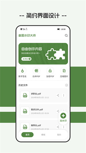3、批量处理便捷,支持同时选中多张图片或多个文档批量添加水印,还能保存个人常用的水印设置为 “我的模板”,下次使用直接调用,效率更高。