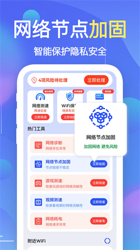 wifi钥匙万能连app免费软件是一款专注于免费WiFi连接的实用工具类软件,全程无付费门槛,凭借庞大的热点数据库与智能连接技术,让用户轻松破解流量焦虑。无论是在商场、车站等公共场所,还是陌生街区,软件都能自动扫描周边可连接热点,通过云端密码匹配实现一键连网,无需手动输入密码。最新版本强化了安全防护体系,搭载WiFi安全云感知与加密传输隧道,连接前自动评估热点风险并标注安全等级,同时优化了界面交互与连接速度,搭配流量监控、网络测速等附加功能,既能满足用户免费上网的核心需求,又能保障上网安全,成为通勤、旅行、外出时的必备网络助手。