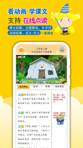 2、课文解析——每篇课文都有详细的段落解析和主题思想标注,让孩子在学习同时更便捷的掌握课文知识内容。