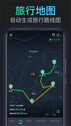 2、【运动记录】跑步、骑行、自驾等轨迹智能分析。
