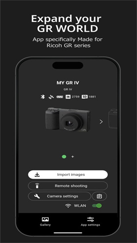 gr world中文版是一款专门为理光旗下产品打造的手机软件,软件还可以实时获取手机的定位信息,在照片上进行记录,让每张照片都有时间地点,这款软件的推出让用户队照片的管理更加的轻松,让用户可以更好的与朋友们进行分享。使用方法也十分简单,只需要使用wifi就能连接,用户使用相机拍完照片之后可以直接利用无线传输将拍好的照片传到手机上,免去了使用数据线连接的麻烦,开可以使用手机控制照片拍摄,这个功能使用户自拍的时候可以更加清晰稳定。