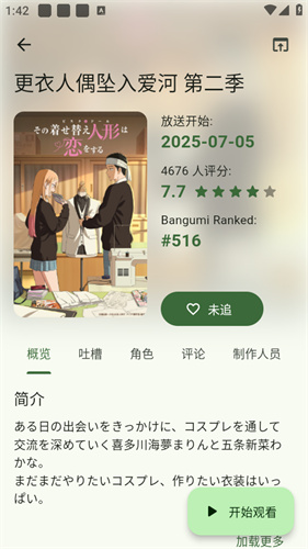 2、用户可以创建追番列表,记录观看历史,支持在线更新和跨设备同步观看记录和设置。