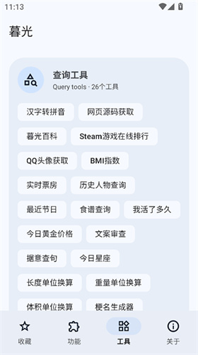 2.多合一工具:暮光工具箱汇集了多种实用工具,包括计算器、时钟、日历、备忘录、翻译器、单位转换器等,满足用户在不同场合的各种需求。