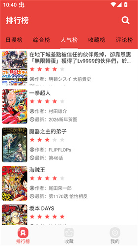 藩茄漫画官方版是一款汇集了海量优质漫画资源的手机追番神器,这款软件不仅可以为我们提供国漫、日漫、港漫、美漫、韩漫等多种不同类型的漫画资源来进行选择,而且你还可以在这款软件上获取到综合榜、人气榜、收藏榜、评论榜等多种不同的榜单,这样我们就可以马上知道目前最热门的漫画资源有哪些,让你可以马上进行阅读。