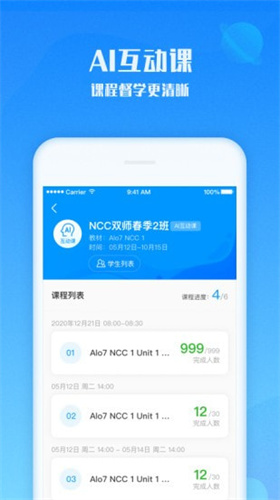 爱乐奇老师官网版老师们能够直接下发班级任务,任务列表、明细一目了然,学生可以直接通过软件上传自己的任务;其次,软件还提供许多AI互动课,与学生们的教材同步和配套练习,让课程教学更加清晰,让老师能够更好地备课;再次,软件还提供老师的培训活动,有许多直播视频供老师们学习和观摩;最后,软件还有课程列表功能,可以一键查看课程详情,高效管理和学习。