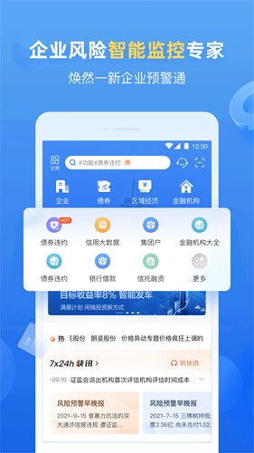 企业预警通官网版是一款专注于智能监控企业风险的风险把控软件。通过这款软件,用户们能够了解目标企业的全景数据,全方位、多维度、可视化地获取企业的深度资料,并且通过查找功能寻找自己想要了解的信息;同时,软件还十分方便查找企业的债券信息,可以快速查看发债人的背景;