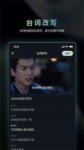 3、丰富多样的创作功能:核心功能十分丰富。具备故事接龙玩法,能让多人在线接力创作,续写心中完美结局;可一键改写角色台词,轻松切换搞笑、治愈、煽情等多种风格;还能自动切换短视频风格,如治愈动漫复古等,满足多样创作需求。