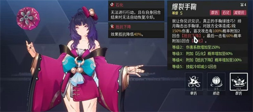 三技能爆裂手鞠为群体攻击技能,对敌方全体发动两次打击,并有概率附加降低抵抗或石化状态。石化属于硬控效果,能完全阻止目标行动一轮,配合行动条削减可形成连续控制链。降低抵抗则提升了后续我方技能的命中率与伤害收益,特别针对高抗性敌人时更具战略意义。该技能在团战中释放时机得当,往往能扭转战局,是绯月鞠作为控制核心的重要支撑技能之一,在伊瑟的多人对战模式中具有广泛应用场景。