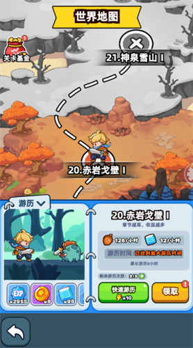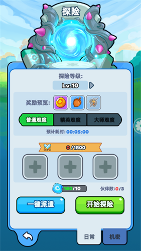 5、探险系统:选择探险难度派遣英雄获得大量资源,别忘了设置!