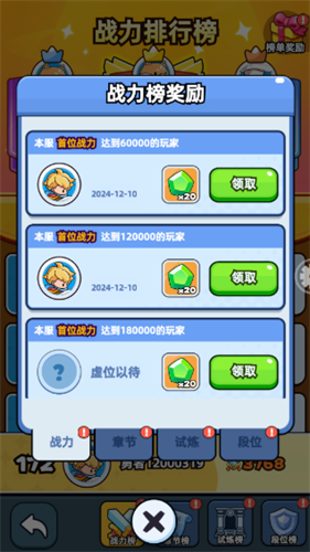 4、战力榜奖励:战力、章节、试炼、段位四大榜单,上榜就送奖励!