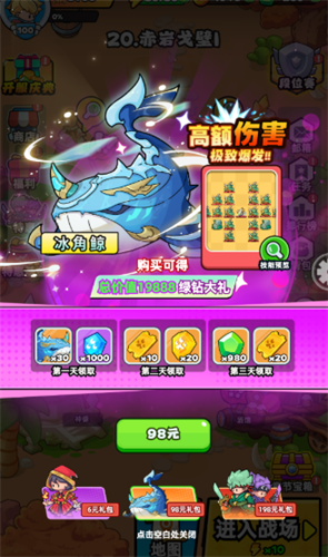 98元档:冰角鲸(单体爆发) + 守护灵材料,冲榜优选!