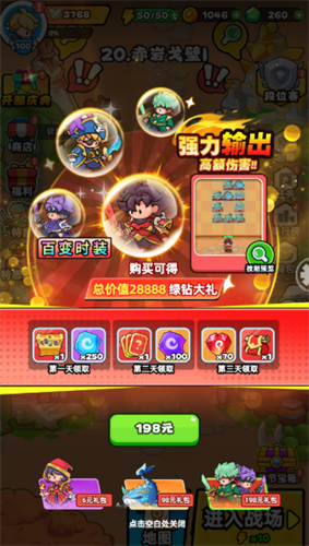 198元档:限定时装 + 技能强化 + 红色自选英雄,霸区必备!