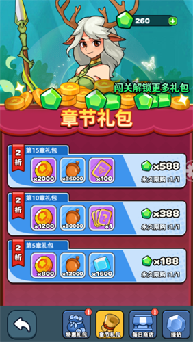 2、章节礼包:每5章解锁超值礼包,性价比超高,推荐购买!