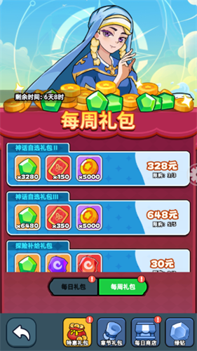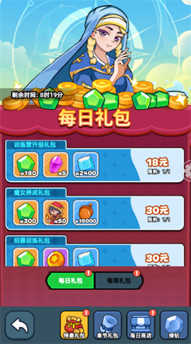 2、特惠礼包:每日/每周限量礼包,资源获取速度遥遥领先!
