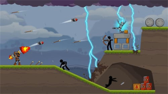 1、全力以赴的搜寻武器装备,通过简单的位置布局,让火柴人们的作战能力变得更强大。