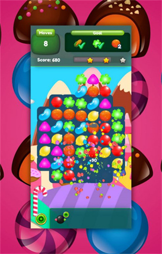 4、争取连消以获得更多分数,可引发上方糖果自动排列形成新匹配。