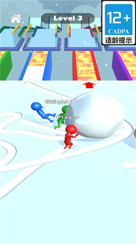 通过逐渐增大雪球体积,最终成为场上最大的雪球并成功到达终点。