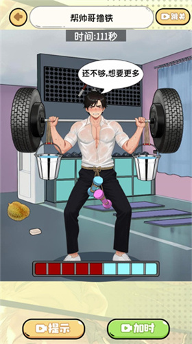 在特定关卡中,玩家需协助角色进行力量训练,通过维持时间越长以获得更高分数。