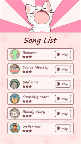 popcat音乐世界中文破解版是一款音乐休闲闯关类手机游戏,游戏中拥有超多歌曲可选,包含了1000多首各国流行音乐,此外,游戏中加入了装扮系统,玩家可以使用闯关成功后获得的金币给自己的小猫咪换新造型,金币也可以用来解锁更多的歌曲,游戏非常适合喜欢音乐想放松的玩家。