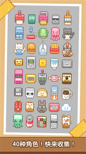 贴贴乐破解版所有人物是一款融合跑酷、像素与可爱元素的趣味游戏,玩家在色彩鲜明的像素世界中展开快节奏挑战,单手滑动即可操控角色前进、转向,完成封箱、收集道具等任务。作为破解版本,它直接解锁全部40多种角色,从童年回忆的胶带造型到萌趣章鱼、搞怪猫咪,无需逐步收集即可随心选用。游戏设置30种背景主题,从糖果小镇到复古街道,搭配欢乐音乐,让跑酷过程既紧张又治愈。同时支持Facebook联动,与好友比拼跑酷距离,破解版还解锁隐藏互动功能,让这场像素冒险充满更多探索乐趣。