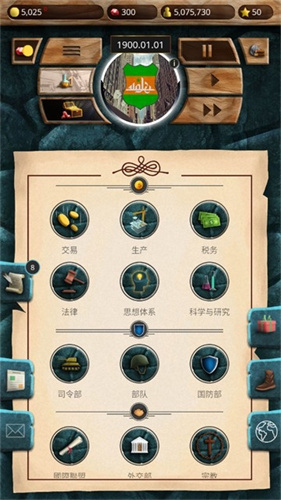 4、支持不侵略条约、贸易协定和代办处等外交操作,以及法律、国家宗教的管理,还有研究、贸易、定植、国际联盟等多种系统,全方位模拟国家的治理与国际互动。