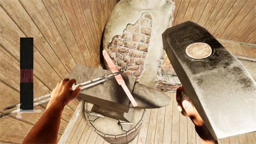 1、独特的铸剑玩法:玩家需要敲打碎石收集原料,加热坩埚融化金属,将铁水倒入模具,敲打成型,最后磨刀。