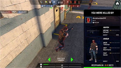 3、 快速复活与流畅对战:被敌人击杀后,3 秒内即可在基地复活重新加入战斗,无需长时间等待,保证对战的连贯性与流畅性。复活后可快速切换武器重新投入战场,让玩家能迅速调整心态,弥补之前的失误,提升整体游戏体验。