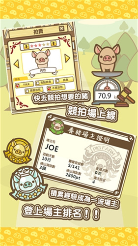 2、真实的养殖盈利循环:构建了“喂养-生长-售卖-盈利-再养殖”的完整盈利循环,玩家通过售卖达标小猪获取收益,再用收益引进更优质的猪种、购买更多养殖设备,逐步扩大养殖场规模。真实的盈利逻辑让养成更具目标感,激发玩家的经营热情。