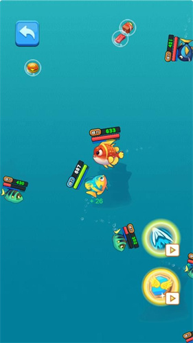 1、玩家也会在一些环节中发现小鱼的进化特点,改变它们的造型,可获得一定的挑战助力。