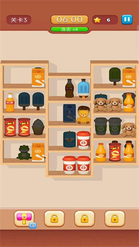 3、一些关卡中将出现不规则的货架,你可关注它们的整体情况。