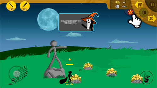 4、 可操控的即时战斗体验,区别于传统纯策略塔防游戏,该游戏允许玩家直接操控任意火柴人单位。点击士兵即可获得控制权,左侧虚拟摇杆控制移动,右侧按钮负责攻击或采矿,比如操控法师释放爆炸法术、指挥巨人击飞集群敌人,这种“全局指挥+即时操作”的结合,让玩家既能制定宏观战术,又能参与微观战斗,增强了游戏的沉浸感与互动性。
