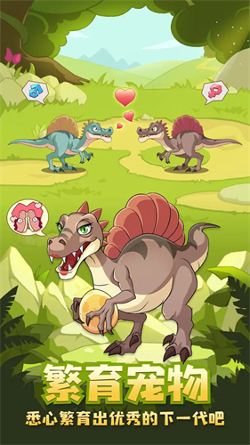 4、卡通画风轻松讨喜,采用Q版卡通风格设计恐龙与场景,恐龙形象圆润可爱,既保留了史前猛兽的特征,又降低了恐怖感,适合全年龄段玩家;场景色彩明亮鲜活,搭配轻快的背景音乐,营造出轻松愉快的游戏氛围。
