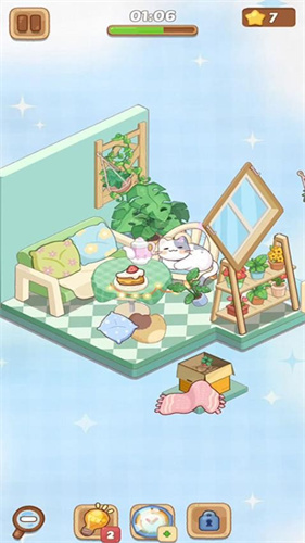 3、猫咪所居住的地方也要摆放相应的猫爬架,这样即可成功地收获相关的条件,以便获取重要的布局。