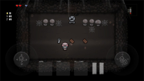 2、核心玩法围绕随机生成机制展开,每层地牢包含普通房、宝藏房、商店等多样区域,隐藏房间需用炸弹炸开墙壁进入,随机道具与怪物组合让每次冒险都无重复套路。