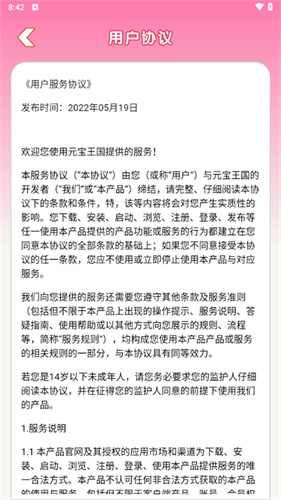 1、下载安装元宝王国游戏,阅读并同意个人信息保护指引。