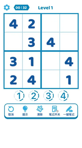 2、界面简洁清晰,数字排布一目了然,玩家可沉浸于纯粹的数独解谜乐趣之中。