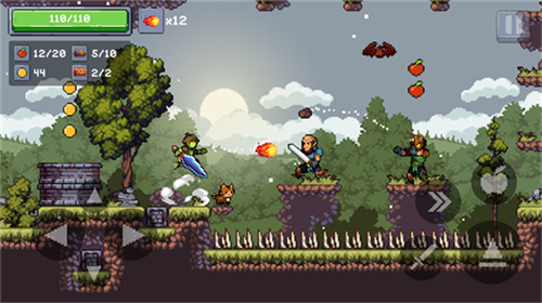 2、左边控制角色的移动,右边是攻击、冲刺、跳跃和投掷苹果。