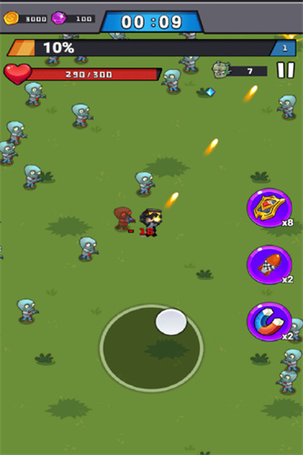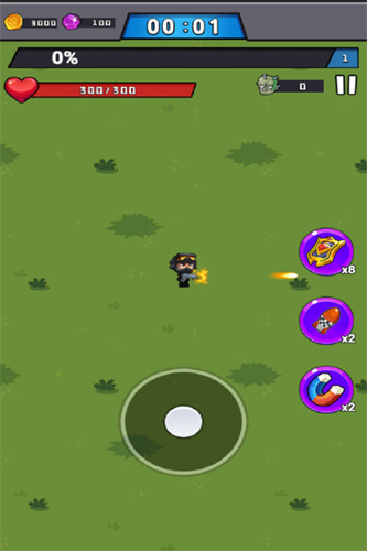 1、玩家需要通过持续点击屏幕的任意位置,来控制游戏角色在场景中自由移动,并主动攻击所有朝你袭来的小僵尸们。