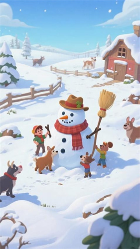 3、在这里你可见到四季不同风景之下的牧场,与动物们一起堆雪人,举办春游活动。