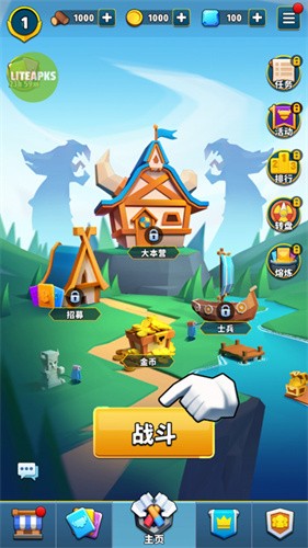 1、进入岛屿战争游戏,选择游客登录,之后便来到的游戏主界面,在主页位置处,点击战斗便可开始关卡挑战,具体的操作点击海面派遣部队。