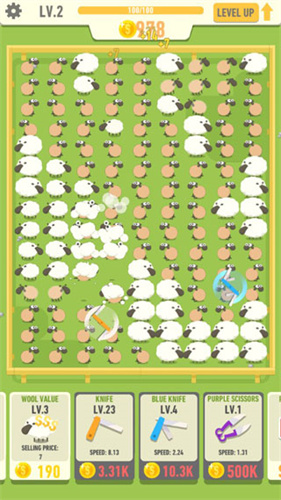 3、优先升级剪毛速度(SPEED)和羊毛价值(WOOLVALUE),例如将KNIFE升级至LV.20可大幅提升单次剪毛收益。