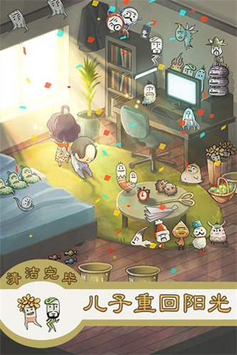 极度爆怒老妈物语安卓版无广告版是一款充满着治愈元素的养成游戏。游戏的画风采用了漫画卡通风格,柔和的画面以及画风,让玩家能够享受到治愈的感觉。游戏中的儿子因为一连串的打击,变得意志消沉还引来了一连串的消极精灵,为了让儿子重新坚强起来,玩家扮演的妈妈,要将这些精灵消灭。游戏中,玩家可以选择的武器非常多,包括了纸扇、脸盆、吸尘器等,极大的增加了玩家的游戏体验感。
