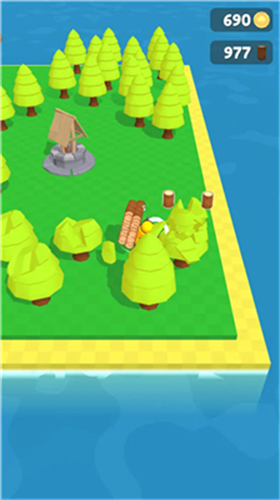 1.玩家使用拇指滑动,控制小人移动,砍伐木材,扩张,探索小岛。