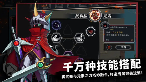 1、平面动作肉鸽游戏,大部分内容都很常规,局内技能和元素的组合还算有点新意,槽位最初三个技能和三个元素,后期还能再扩展。每个技能与攻击动作相关,有一定搭配组合,再配合上不同元素效果,组合的空间很大,而实际应用还是战力优先,蓝色品级的总比白色的好。