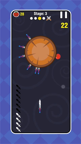 3、飞刀数量慢慢增加,后期想要过关需要迅速投掷。