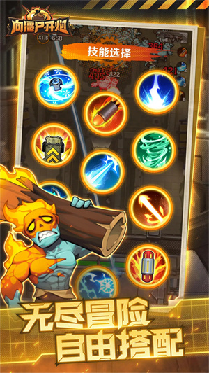 1、这里你需要升级你的武器,在面对不同的僵尸,完整你本身觉醒的技能战斗。