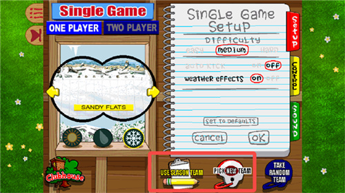 1、进入后院橄榄球1999,游戏中有两个模式,单人模式(Single Game)和赛季模式(Season Play)。