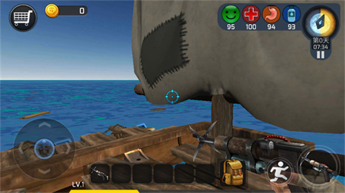 2、海上有各种资源,对准目标,长按右侧射击按钮,将物品拉回来;